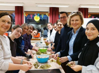 Ein kulinarischer Brückenschlag in Bobingen Der Deutsch-Türkische Freundschaftsverein Bobingen hat am 30.01.2026 in die Schulküche der Bobingen Mittelschule eingeladen. Unter dem bewährten Motto „Integration geht durch den Magen“ kamen dort Vertreter aus Politik, Bildung und Gesellschaft zusammen, um gemeinsam die Geheimnisse der türkischen Kulinarik zu entdecken. Damit unterstrich der Verein, dass die Küche der beste Ort für Verständigung ist. Der Einladung des Vereins folgten zahlreiche prominente Gesichter des öffentlichen Lebens. So tauschten unter anderem der Zweite Bürgermeister Armin Bergmann, die Landtagsabgeordnete Dr. Simone Strohmayr und der Leiter der Polizeiinspektion Bobingen, Martin Binder, ihre gewohnte Arbeitsumgebung gegen die Kochschürze. Besonders stark war der Bildungs- und Sozialsektor vertreten: Schulleiterin Judith Harsch-Lechner (Mittelschule Bobingen) und Rektorin Daniela Volkert (Grundschule Straßberg) wirkten ebenso aktiv mit wie das Team vom Jugendzentrum und Streetwork Bobingen (Larissa Engler, Lara Braunbarth und Tugce Bayrak). Komplettiert wurde die Runde durch Lara Hammer (Geschäftsführerin Tierheim Augsburg) und die lokale Unternehmerin Irena Riegel (Foto Morgana). Unter fachkundiger Anleitung von Kadriye Diri entstand ein mehrgängiges Menü: Von feiner Joghurtsuppe über handgerollte Weinblätter und knusprigen Börek bis hin zu „Karnıyarık“ (gefüllte Auberginen). Doch es ging um mehr als Rezepte. „Die beeindruckende Resonanz und der Erfolg dieses Abends sind ein starkes Signal für ein gelebtes Miteinander in unserer Stadt“, zog Hamide Ates, stellvertretende Vorsitzende des Vereins, ein zufriedenes Fazit. Das gemeinsame Tun an Herd und Tafel bewies einmal mehr, dass kulinarischer Austausch das Fundament für Vorurteilsabbau und neue Freundschaften legt.